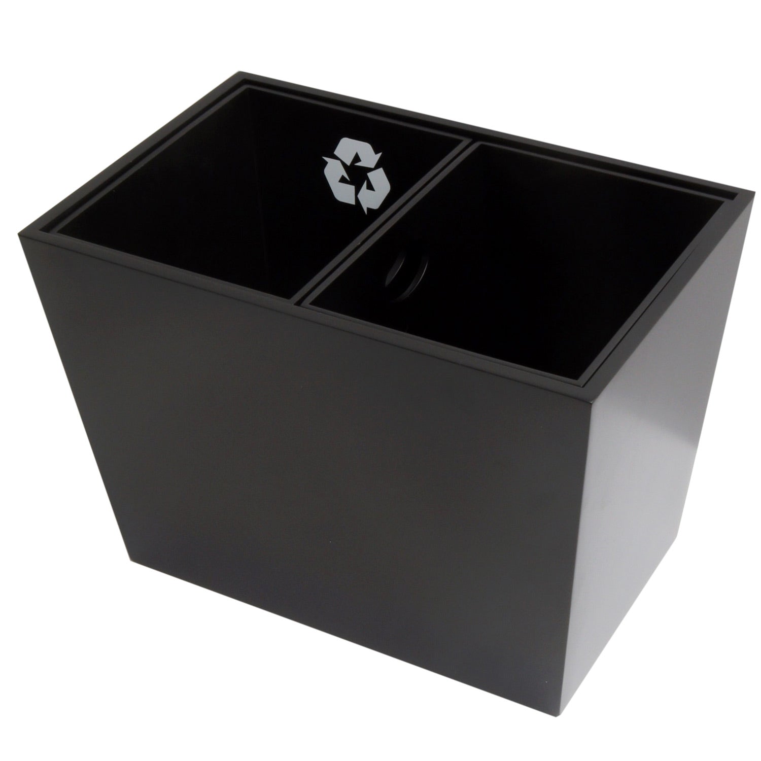 Removable recycle and regular trash liners.