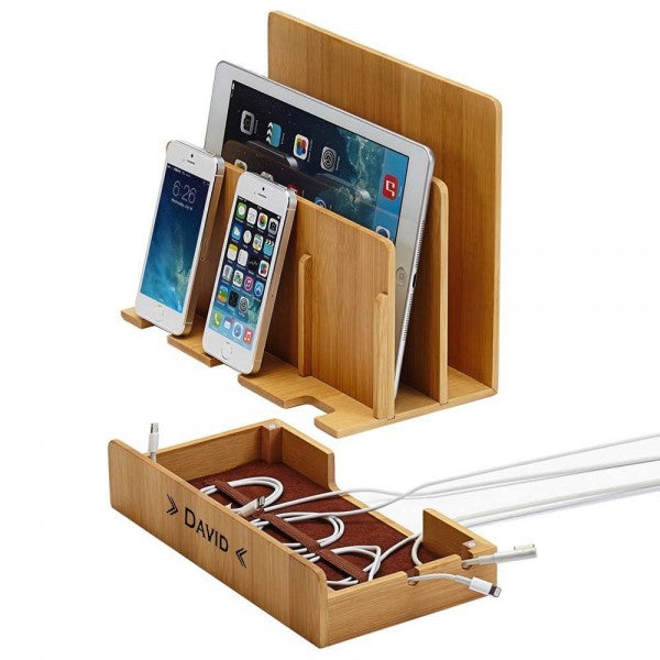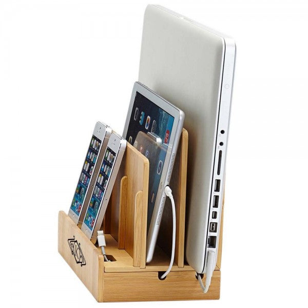 Keep all your portable gadgets charged and organized with our Multi-Device Charging Station & Dock. With room for a laptop, tablet and up to 3 other devices this sturdy stand holds and hides unsightly cords. A magnetic base flips open to reveal a hidden storage compartment for wires that otherwise clutter up your desk space. No real techie will want to be without this essential accessory!